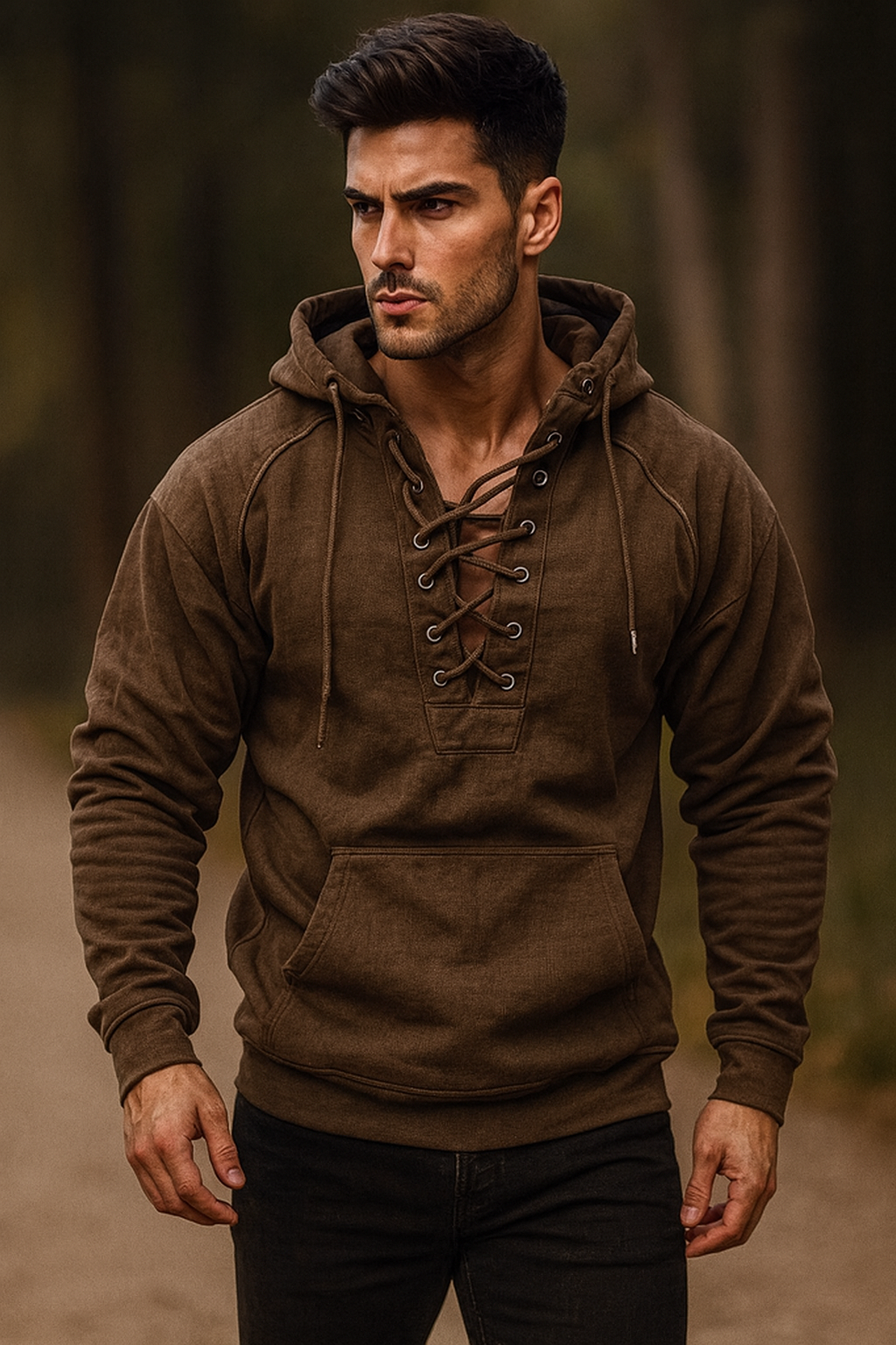 Stand out from the crowd with a hoodie that redefines casual style. The Vintage Lace-Up Hoodie brings a bold lace-up front design that turns everyday wear into a fashion statement.