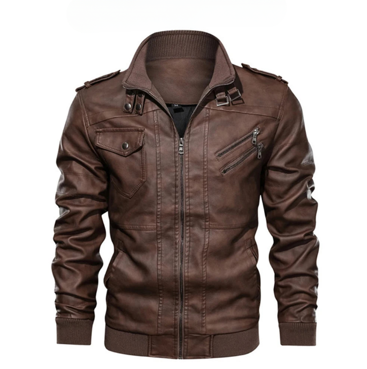 Crafted from premium faux leather, this jacket delivers a sleek, structured fit with detailed stitching, multiple zippered pockets, and a modern biker-inspired design. Perfect for layering over tees or sweaters, it keeps you stylish and warm during the colder months.