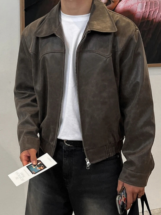 Crafted with premium faux leather, this jacket delivers durability, comfort, and an effortlessly cool look. Its minimalist cut and versatile brown tone make it the ultimate piece to upgrade your wardrobe. Whether paired with jeans and trainers or layered over a shirt, it guarantees confidence and style.