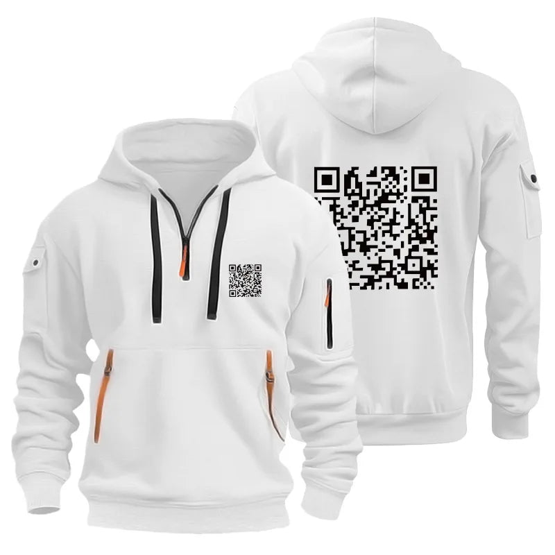 The QRTrend Street Hoodie blends modern streetwear with interactive style. With bold zipper details and a unique QR code design on the front and back, it’s more than clothing—it’s a statement.