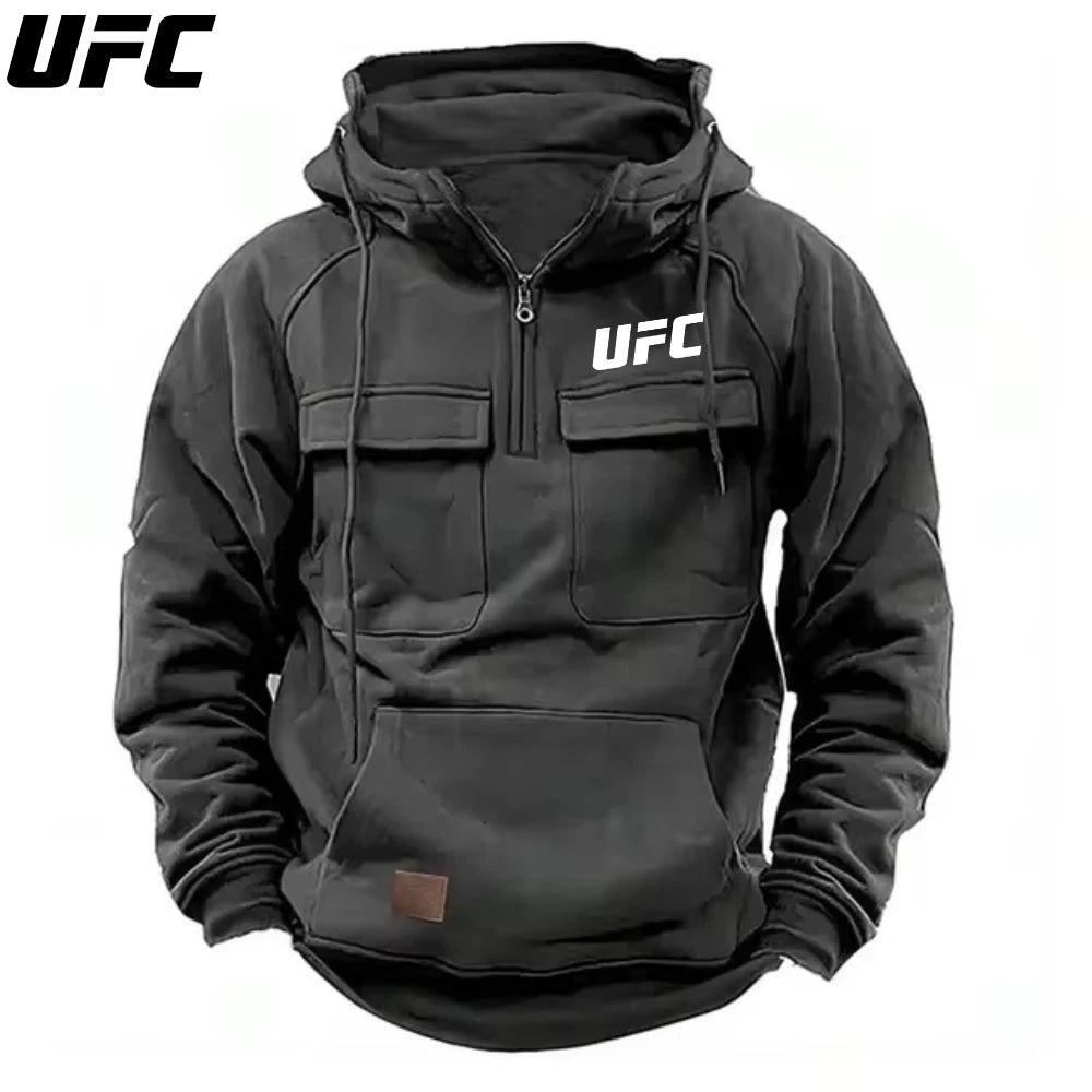 Designed for autumn and winter, this hoodie combines rugged durability with modern streetwear flair. With its tactical pocket design, half-zip detail, and bold UFC branding, it’s more than just warmth — it’s a statement.